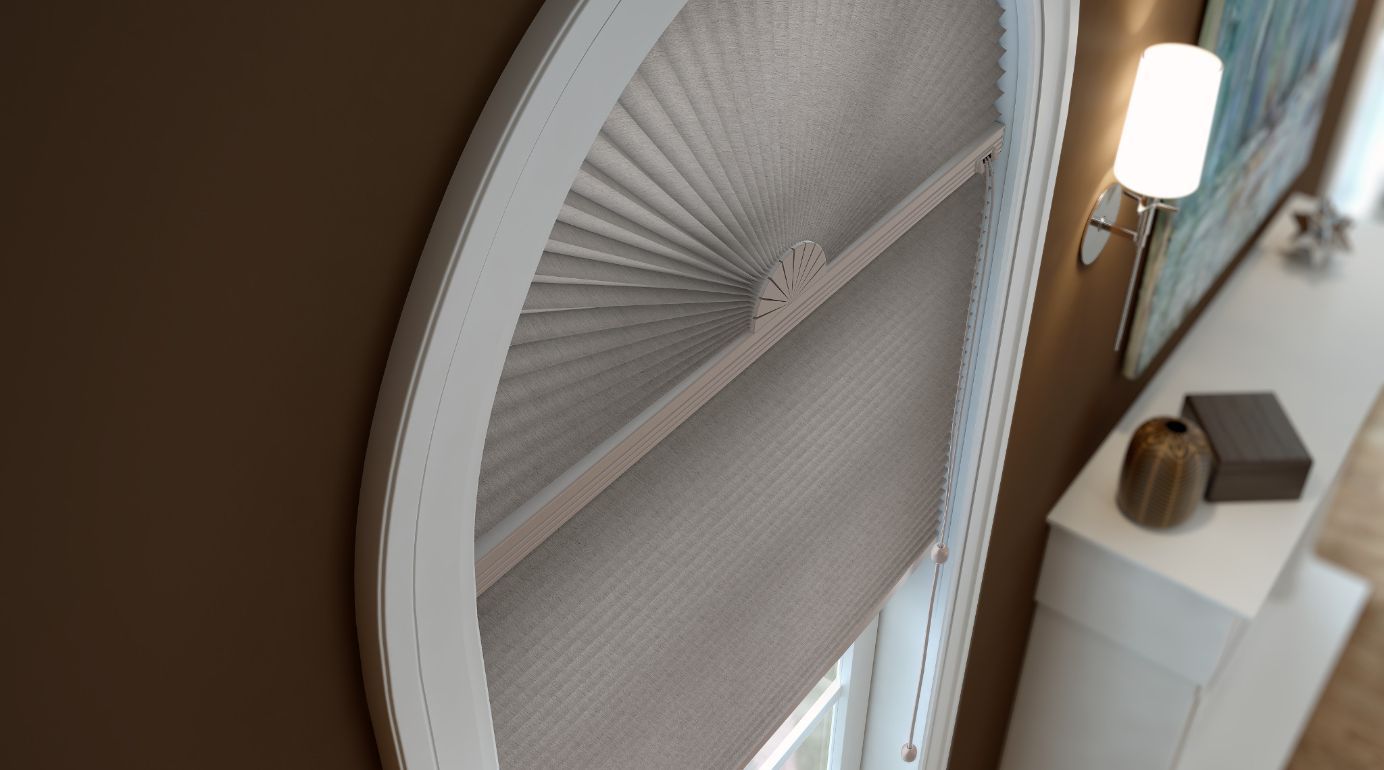 Large windows can be tricky to cover. In general, the wider a window the more costly its coverings will be. The affordability of pleated shades makes it possible for you to get two shades on one headrail. You can still enjoy the sleek look of a single headrail while covering the expanse of your windows.