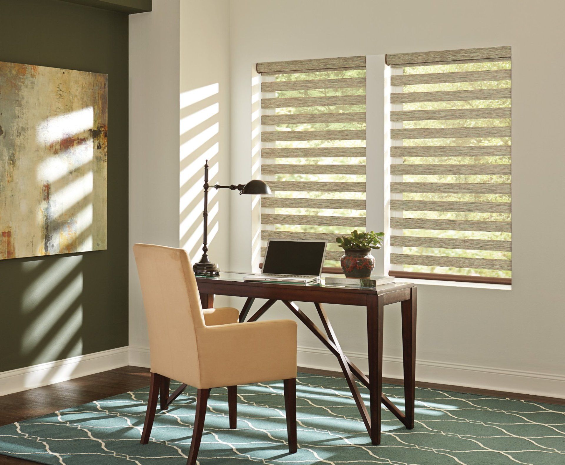 The alternating fabrics give you a high level of control over incoming light and privacy. When the vanes are closed and aligned, you’ll enjoy a higher level of privacy while still having diffused natural light. When you want more light, adjust the vanes accordingly. The beauty of mezzanine shades comes in the balance of privacy while the vanes are adjusted to let in the maximum amount of natural light.
