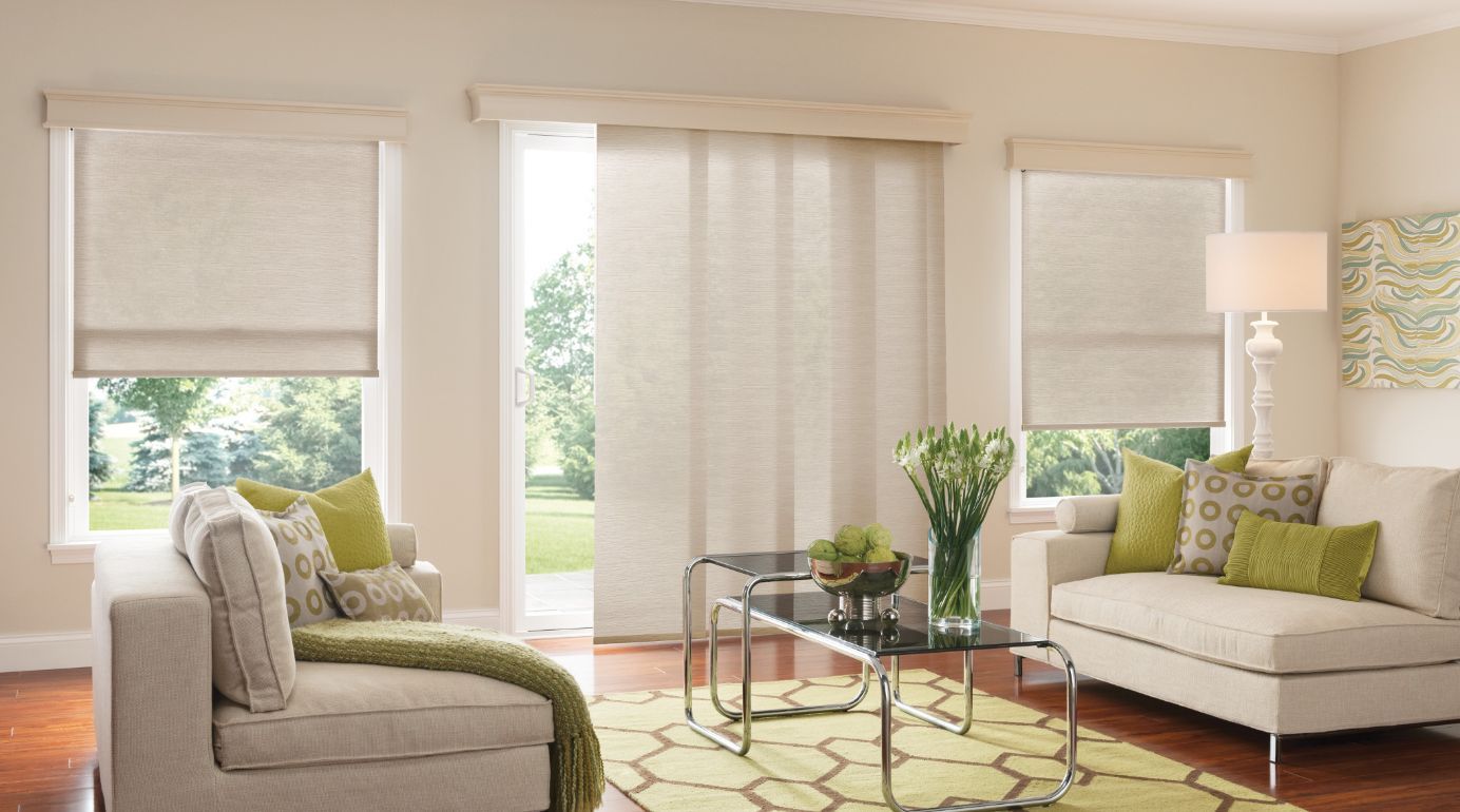 The slim profile of pleated shades makes them ideal for patio doors as they will leave clearance behind the handles. Pleated shades also offer a small stacking height when fully raised and look great with an outside mount over sliding patio doors.