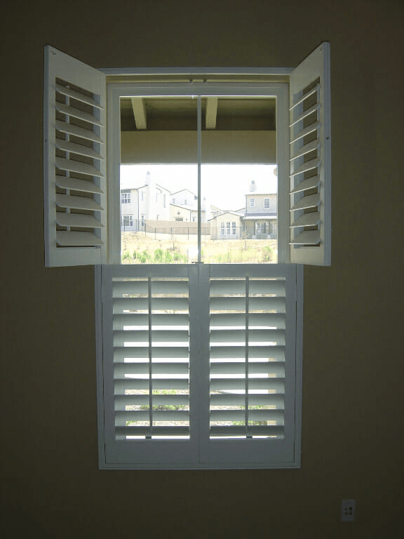 Top and bottom panels hang in the same window but operate separately, allowing the top to be opened for daylight while the bottom is closed for privacy