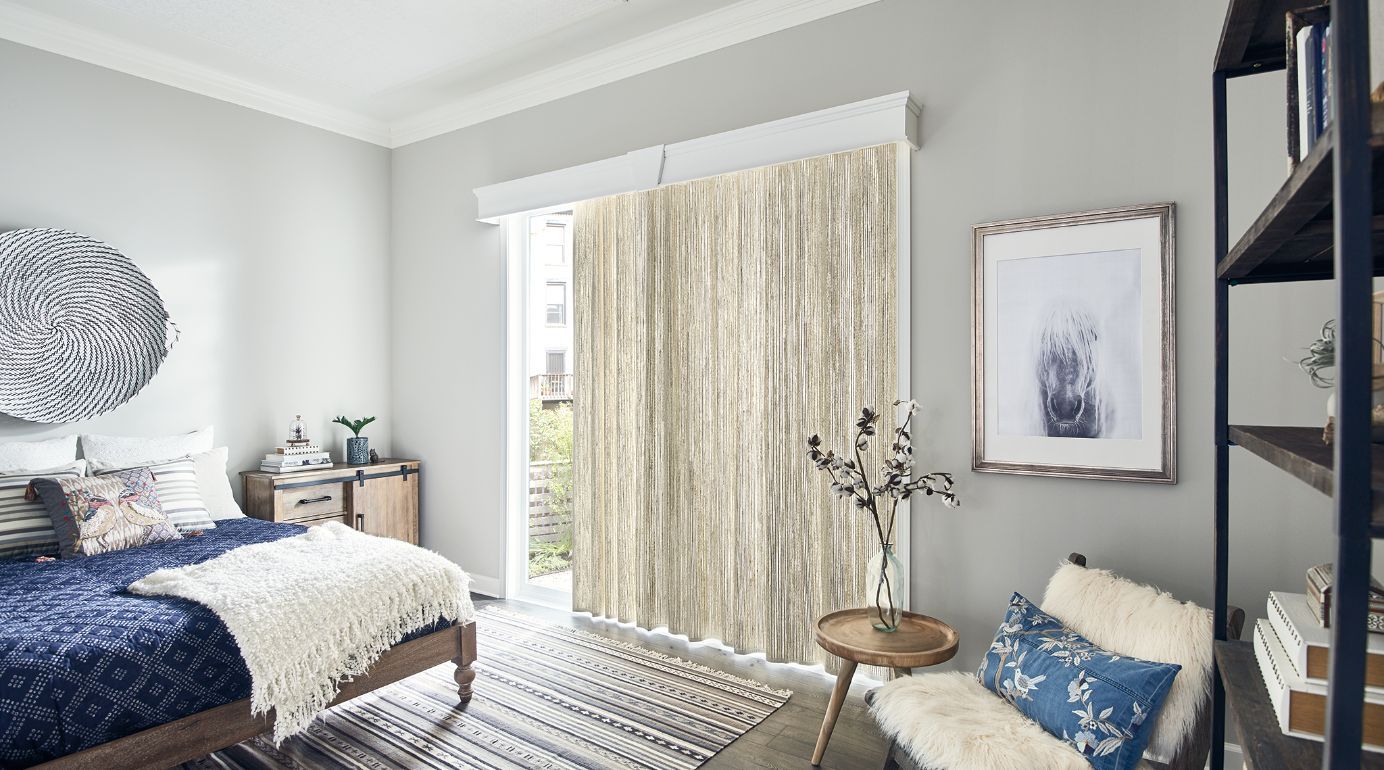 The woven material of Graber® natural drapes has the elegant soft folds of cloth drapery but with the natural beauty of woven wood shades. Like the wood shades and bamboo shades of the Tradewinds® Natural Shades collection, they are also hand-woven from renewable natural materials. Natural drapes are a stunning choice for expansive windows and sliding glass doors.